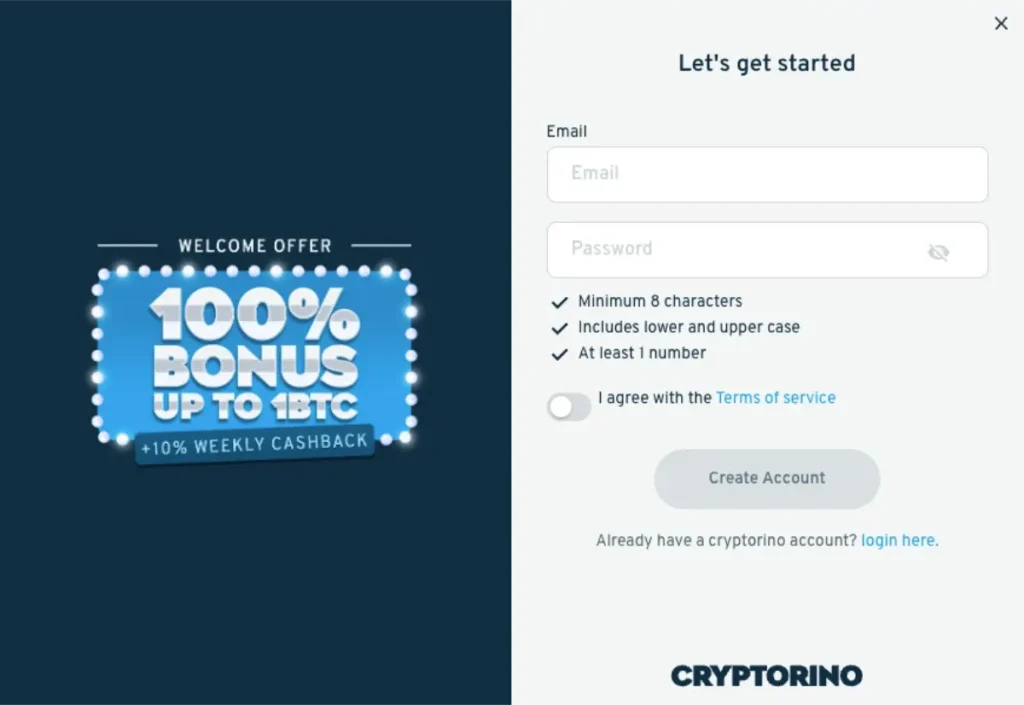 The standout detail here is that there’s no minimum deposit at all. That puts Cryptorino in elite company alongside Thrill.